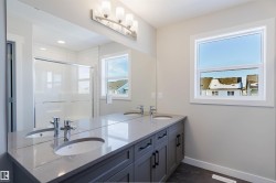 Award-winning Crystal Creek Homes presents this stunning two-storey 3 bed, 3 bath detached home in the highly desirable community of Elan in Beaumont. This home offers a perfect blend of modern style and everyday comfort. The open-concept main floor features a full bath and a versatile den. The contemporary kitchen includes a pantry & spacious island that overlooks the bright and airy living room, complete with a cozy fireplace for relaxing evenings. Upstairs, you'll find a generous bonus room, a convenient walk-in laundry area, a 4-piece bathroom, and 3 spacious bedrooms. The primary suite includes a walk-in closet and a luxurious ensuite with double sinks & shower. This home also comes with a $5,000 appliance credit, a separate side entrance to the basement, and a double attached garage! Don't miss your opportunity to make it yours. UNDER CONSTRUCTION! Photos shown are of the same model and are for illustrative purposes only. See 2nd photo for interior colors.