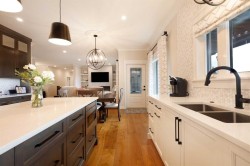 Welcome to 911-2 Avenue W…a truly special walkout bungalow where every detail has been carefully curated for comfort, beauty and everyday enjoyment. From the moment you arrive, the home’s undeniable curb appeal draws you in with its striking stucco and stone exterior, charming shake accents and a meticulously landscaped yard to enjoy from a cozy covered front porch, perfect for morning coffee.Step inside and be greeted by a spacious, light filled entry that sets the tone for the open concept design. Gleaming engineered hardwood floors flow into a bright and airy living room, where custom built-ins and a welcoming fireplace create a perfect space to relax. South facing picture windows bathe the space in natural light, making it feel warm and inviting year round.The heart of the home is the stunning chef inspired kitchen that’s crafted with both style and function in mind. Soft white high profile cabinets are beautifully contrasted with a rich wood toned island and built-in hutch. Quartz countertops, a tasteful tiled backsplash and hand picked lighting and hardware elevate the space. A generous pantry and ample cabinetry ensure you’ll never be short on storage, while the large island invites family and friends to gather around.Just off the kitchen, you’ll find a practical main floor laundry room with access to the heated garage and a dedicated home office tucked near the front entry, perfect for working from home or managing busy family life.The primary suite is a peaceful retreat, spacious enough for a king size bed and all your favourite furnishings. A walk-in closet offers built-in organization and the spa like ensuite features dual sinks, quartz countertops, a soaker tub, separate shower and cozy in-floor heat. An additional main floor bedroom is ideal for guests or family, paired with a stylish bathroom with a relaxing soaker tub and separate shower.Downstairs, the walkout basement offers even more living space, with a large open family and recreation area filled with natural light. A second fireplace adds a cozy touch, while the layout allows plenty of room for lounging, entertaining or exercise. Two generously sized bedrooms, another full bathroom and a large storage room round out the lower level.Step outside into your private backyard oasis. From the expansive deck with a premium louvered roof, to the beautifully designed landscaping with underground sprinklers, raised garden beds and detailed concrete work, all enclosed by low maintenance vinyl fencing, this yard is built for outdoor living and entertaining.With thoughtful renovations from top to bottom, including updated furnace and air conditioning, this home is the definition of move-in ready. A heated double garage adds even more value and convenience offering parking for 2 vehicles along with additional storage and work space.If you’ve been dreaming of a one of a kind home that balances elegance, comfort, and functionality, this is the one. Contact your real estate agent today.
