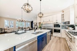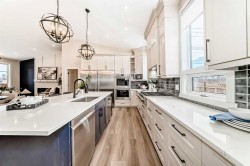 This beautiful home was completely rebuilt walls and new roof trusses to including additions to the main and upper levels. Now 3300 sq feet on three levels plus basement. 10 foot ceilings on the main floor 15 foot peak vaulted ceiling plus numerous windows allowing natural light to filter throughout the great room. The chef's kitchen is the hub of the home and features a large eat up island that seats 6, double door professional fridge/freezer, 6 burner gas cooktop, 2 dishwashers, double ovens and quartz counters. The large walk-in pantry/mudroom is steps from the kitchen and is complete with tons of storage and closets. Step into the sunny west side yard via the garden doors, where you will find a perfect space to BBQ and dine al fresco on the private patio just steps from the large sunny yard. This huge pie lot extends west to the fence. The yard also features a double gate and gravel pad allowing for RV parking, or would make a great space for a dog run or outdoor storage. Upstairs is the Owner's suite, with a generous bedroom, custom walk in closet with built in drawers, a 5 pc ensuite with soaker tub , shower and Japanese style high end toilet, as well as an additional closet/vanity area. The two additional bedrooms on this level are bright with oversized windows, and share access to the main bathroom. One bedroom features a door directly into the main bath. The oversized laundry room has ample cabinetry side by side washer/dryer, sink and space to hang dry. The inviting third level offers a cozy family room complete with an electric fireplace and bar, an additional guest bedroom or den. Garden doors on this level lead you to the amazing 4 season centrally heated sunroom. This large 12x34 ft room features windows all around, 3/4 inch rubber flooring . This room is the ideal space for a games room, gym or quiet sitting room overlooking the large sunny yard. Lights on separate switches so room could be subdivided. Downstairs on the 4th is an additional space for a media room, kids play space, gym or office and also features a 3 pc bathroom and tons of storage. High end 10 inch wide plank vinyl flooring runs throughout the home with dry core insulated boards on the concrete third and fourth levels. All new mechanicals, including AC, new underground plumbing with backflow valve, new electrical panels with second one in garage with 220 plug and new garage heater. Exterior is completer with all new James Hardie boards, new asphalt singles 2025, new landscaping and trees planted. Front walk and driveway were done by Urban Rubber a wonderful no slip surface and so easy to shovel. Drone video and picture gallery of the transformation in supplements. Beautifully treed and private crescent, close to schools, shops and Edworthy Park.