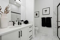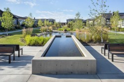 The Streams of Lake Mahogany present an elevated single-level lifestyle in our stunning Reflection Estate homes situated on Lake Side on Mahogany Lake. Selected carefully from the best-selling renowned Westman Village Community, you will discover THE BROOK, a home created for the most discerning buyer, offering a curated space to enjoy and appreciate the hand-selected luxury of a resort-style feeling while providing you a maintenance-free opportunity to lock and leave. Step into an expansive 1700+ builders sq ft stunning home with 12-foot ceiling heights with views of Lake Mahogany featuring a thoughtfully designed open floor plan, inviting an abundance of natural daylight with soaring ceilings and oversized windows. The centralized living area, ideal for entertaining, offers a Built-in KitchenAid sleek stainless steel package with French Door Refrigerator and internal ice make and water dispenser, a 36-inch 5 burner gas cooktop, a dishwasher with a stainless steel interior, and a 30-inch wall oven with convection microwave; all nicely complimented by the Frappe Elevated Color Palette. The elevated package includes rich two tone cabinets in the kitchen with oversized hardware; glossy herring bone tile at the kitchen backsplash; soft close cabinetry with ceiling height uppers, square front hood fan shroud, sil granite undermount sink, upgraded pantry, under cabinet lighting and a stylish modern light package in a beautiful finish to match. All are highlighted with bright white Quartz countertops. You will enjoy two bedrooms on either side, nicely framing in the central living area featuring a floor to ceiling tiled feature fireplace, with the Primary Suite featuring a spacious 5-piece oasis-like ensuite with dual vanities, a large soaker tub, a stand-alone shower, and a generous walk-in closet with built-ins. The Primary Suite and main living area step out to a 54ft terrace with beautiful views. Yours to soak in every single day. To complete the package, you have a sizeable foyer, and the spacious laundry room is adjacent to the entry of your private double-attached heated garage with a full-width driveway. Jayman's standard inclusions feature their trademark Core Performance, which includes Solar Panels, Built Green Canada Standard with an Energuide rating, UVC Ultraviolet light air purification system, high-efficiency heat pump for air conditioning, forced air fan coil hydronic heating system, active heat recovery ventilator, Navien-brand tankless hot water heater, triple pane windows and smart home technology solutions. Enjoy Calgary’s largest lake, with 21 more acres of beach area than any other community. Life ready for the way you live!