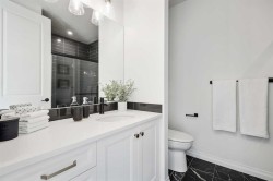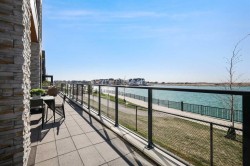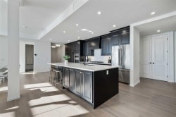 The Streams of Lake Mahogany present an elevated single-level lifestyle in our stunning Reflection Estate homes situated on Lake Side on Mahogany Lake. Selected carefully from the best-selling renowned Westman Village Community, you will discover THE BROOK, a home created for the most discerning buyer, offering a curated space to enjoy and appreciate the hand-selected luxury of a resort-style feeling while providing you a maintenance-free opportunity to lock and leave. Step into an expansive 1700+ builders sq ft stunning home with 10' ceiling heights overlooking Mahogany Lake featuring a thoughtfully designed open floor plan inviting an abundance of natural daylight with soaring 10-foot ceilings and oversized windows. The centralized living area, ideal for entertaining, offers a Built-in KitchenAid sleek stainless steel package with French Door Refrigerator and internal ice make and water dispenser, a 36-inch 5 burner gas cooktop, a dishwasher with a stainless steel interior, and a 30-inch wall oven with convection microwave; all nicely complimented by the Charcoal Elevated Color Palette. The elevated package includes rich tone cabinets in the kitchen with oversized hardware; glossy subway tile at the kitchen backsplash; soft close cabinetry with 36" uppers, angled front hood fan shroud, sil granite undermount sink, upgraded pantry, under cabinet lighting and a stylish modern light package in a beautiful finish to match. All are highlighted with bright white Quartz countertops. You will enjoy two bedrooms on either side, nicely framing in the central living area, with the Primary Suite featuring a spacious 5-piece oasis-like ensuite with dual vanities, a large soaker tub, a stand-alone shower, and a generous walk-in closet with built-ins. The Primary Suite and main living area step out to a 54ft terrace with a gorgeous view of the Lake. Yours to soak in every single day. To complete the package, you have a sizeable foyer, and the spacious laundry room is adjacent to the entry of your private double-attached heated garage with a full-width driveway. Jayman's standard inclusions feature their trademark Core Performance, which includes Solar Panels, Built Green Canada Standard with an Energuide rating, UVC Ultraviolet light air purification system, high-efficiency heat pump for air conditioning, forced air fan coil hydronic heating system, active heat recovery ventilator, Navien-brand tankless hot water heater, triple pane windows and smart home technology solutions. Enjoy Calgary’s largest lake, with 21 more acres of beach area than any other community. Enjoy swimming, canoeing, kayaking, pedal boating in the summer, skating, ice fishing, and hockey in the winter with 2 private beach clubs and a combined 84 acres of lake & beachfront to experience. Retail shops & professional services at Westman Village & Mahogany’s Urban Village are just around the corner, waiting to be discovered.