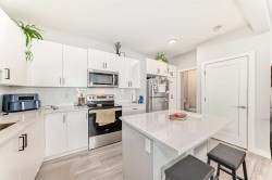 Welcome to your new 2-story townhouse nestled in the exclusive community of Tuscany. This upgraded unit with central air offers a bit of tranquility and convenience. The main living space boasts extra cabinets in the kitchen, complemented by upgraded sleek quartz countertops, an island and stainless steel appliances. An additional powder room has been added for your guests convenience, luxury vinyl flooring adds a touch of elegance. The upper level features a generously sized second room and convenient laundry with front load washer, dryer, along with a large main bathroom. Retreat to the master bedroom, complete with a large walkin closet and ensuite with; a walk-in shower, roller blinds on every window, including blackout blinds in the bedrooms. Out front you will find a private patio, with a gas bbq line to enjoy on summer nights. Located close to all amenities, including Crowchild Trail and Stony Trail, this townhouse offers both comfort and accessibility. Don’t miss the opportunity to make this your new home sweet home.