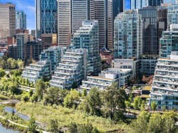 Wonderful opportunity to live in a one of a kind boutique building consisting of only 7 homes in a four storey concrete and steel luxury building set on the banks of Prince's Island, Eau Claire and the Bow River. This top of the line ground floor open layout condo consists of 3 spacious bedrooms, all with their own ensuite and 1/2 bath with views that go forever. This prime location ground floor home has a huge enclosed wrap around patio allows the new owner to live with the comfort and space of a large bungalow but with the security of lock and go and no maintenance for easy travel. This new never been lived in condo has everything your next home awaits with Subzero and Wolf appliances, side x side laundry and of course 2 side x side heated underground parking stalls and separate storage locker. Come by as see what you've always been looking for. Perfect for ones looking for a long term livable home without sacrificing on size or outdoor space!