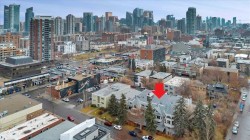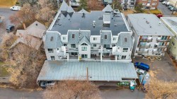 This is a standout spacious and upgraded unit with must-have features. Starting with the ideal CENTRAL LOCATION on a quiet street in Lower Mount Royal with easy access to restaurants, shops, downtown, and main roads. Everything you need is close by, including Mount Royal School, trendy 17th Avenue district, major transit routes, the Bow River Valley and more. This suite has modern finishes and functional layout with big separate living spaces allowing for many options to fit your lifestyle. The welcoming entrance gives access to a closet, half bathroom, upper level, and big dining space with a pantry to the side. The functional kitchen is complete with stainless-steel appliances, stone counter tops, soft close cabinets, and serving counter to a flex space. The grand living room features a two-story ceiling, fireplace, multiple west windows, and walkout to the patio. On the upper level the bonus space loft gives more options for living, work at home, gym, or a studio. The two bedrooms are big enough for a king bed and have great closet space. The main bathroom includes stylish finishes and shelving. Completing this full package is the laundry space with a top-end combination washer/dryer (non-venting). The 200+ sq ft private patio with evening sun is roofed, enclosed with fencing maintained by the condo, and finished with artificial turf.All spaces are bright, open, sunny, and easy keep. Most recent upgrades include the high efficiency wash/dryer, microwave hood fan, and various light fixtures. The fireplace is cleaned and inspected annually. Parking spot is covered, closest to back entrance, and easy access drive-through. This is a quiet and solid concrete frame building. It is well-maintained and funded. Common rooms include bike storage, recycling, and a laundry room. This MOVE-IN READY home truly is a must-see.