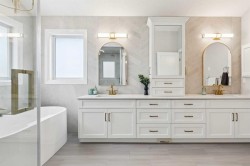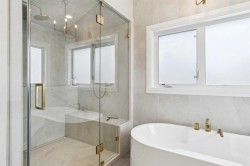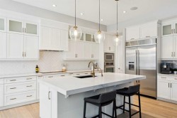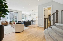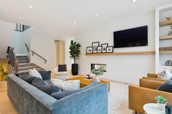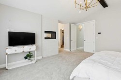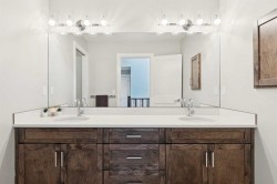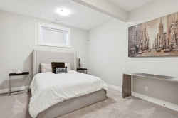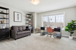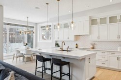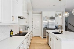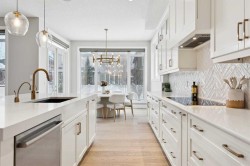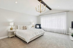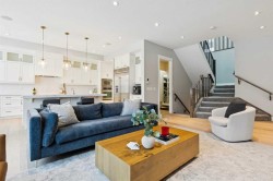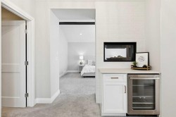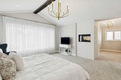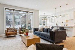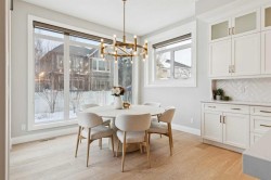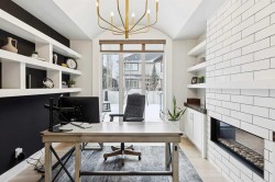 This is a home that thoughtfully accommodates real family life with space for work, rest, and entertaining, beautifully arranged across more than 4,500 square feet. Situated on a convenient, walkable street in West Springs, the property is close to some of Calgary’s best schools, parks, recreation, and everyday amenities, all within easy reach.On arrival, you’re greeted by an impressive vaulted, curved-ceiling office complete with custom built-ins and a striking two-sided fireplace, a space that works equally well for focused work or relaxed conversation. From there, the main living area opens with 10-foot ceilings and expansive west-facing windows that flood the home with natural light. A full brick feature wall with oak mantle and built-ins anchors the family room, seamlessly connected to a chef’s kitchen outfitted with JennAir appliances, custom cabinetry, and generous prep space. The dining area opens directly onto the composite deck and west backyard, ideal for evening sun and family gatherings.A thoughtfully designed walk-through pantry connects the kitchen to a well-appointed mudroom with custom storage, leading to the oversized, fully finished triple garage with epoxy floors.Upstairs, soaring ceilings and skylights continue the sense of openness. The primary retreat is expansive, featuring vaulted ceilings, large west-facing windows, and an additional double-sided gas fireplace that adds warmth and character. A private lounge area with built-in bar creates separation within the suite, offering both scale and privacy. The spa-like ensuite includes heated floors, a freestanding soaker tub, and a beautifully designed oversized shower that feels more like a private retreat than a typical bathroom. The generous walk-in closet offers extensive custom storage and connects directly to the laundry room for everyday convenience.Three additional bedrooms complete the upper level - one with its own ensuite, and two sharing a well-designed bath with double sinks and a separate water closet, ideal for busy mornings.The lower level continues the thoughtful design with 9-foot ceilings and heated hardwood floors throughout. A spacious rec room, dedicated gym, and fully equipped second kitchen make this level ideal for entertaining or everyday flexibility. Just off the kitchen is a dedicated wine and storage room, adding both function and character. A fifth bedroom and full bath complete the space.Many of the home’s key spaces - including the kitchen, living area, primary ensuite, fireplaces, powder room, and garage - were tastefully updated in 2022, blending timeless design with enduring quality.