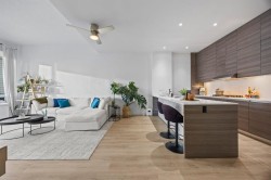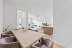 Discover a one-of-a-kind urban retreat in the heart of Calgary’s vibrant Beltline, just steps from countless premier shops, services, restaurants, cafés, and all the energy of inner-city living! This 2 storey unit features its own private, exterior entrance, welcoming you into a space defined by soaring high ceilings that create an immediate sense of openness, grandeur, and comfort. The open concept main living area is designed for effortless entertaining. The modern kitchen is equipped with stainless steel appliances, full-height cabinetry, ample storage, generous counter space, and a large island with seating for four. Adjacent you have the spacious dining area with access to a cleverly designed storage space beneath the stairs, complete with built-in cabinets ideal for pantry use, a huge perk for condo living. Throughout the home, you’ll find new vinyl plank flooring for easy, low-maintenance living, complemented by new 6" baseboards for a clean, contemporary finish. Additional upgrades include fresh paint, a new washer and dryer, and two wall-mounted AC units to keep you comfortable year round. Upstairs, you’ll find the laundry room, complete with shelving and a stacked washer and dryer for maximum convenience. The primary bedroom is a true retreat, offering large windows and even enough room for a writing desk or vanity. It features a walk-in closet with built-ins and a luxurious 5-piece ensuite complete with a double vanity, generous counter space and storage cabinets, a soaker tub, a frameless stand-up shower, and a linen closet. The second bedroom is a great size and enjoys easy access to the second bathroom, finished with the same upscale features found throughout the home. This upper level also connects directly to the main building, where you’ll find a party room and access to the parkade. And the standout feature? This stunning unit includes its own PRIVATE, DOUBLE GARAGE with its own private storage unit, a rare offering that delivers convenience, security, and additional space you won’t find elsewhere. The building also offers concierge service for added comfort. With large windows, plenty of natural light, modern upgrades, and a truly unbeatable location, this exceptional Beltline home is bright, stylish, and move-in ready!