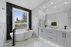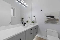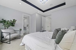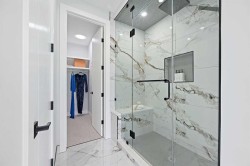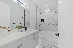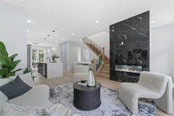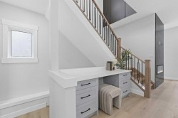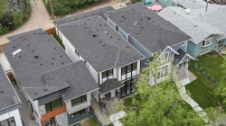 Welcome to 107 Hartford Road NW – a stunning brand-new executive home offering over 2,800 sq ft of beautifully designed living space in the heart of Highwood. Set on a quiet, tree-lined street, this two-storey modern masterpiece boasts exceptional curb appeal with stone, Hardie siding, and Smartboard accents. Step inside to discover a very bright and open floorplan with extensive upgrades throughout—a home that truly must be seen to fully appreciate the quality craftsmanship and detailed finishes that went into this custom build. The main level features 10’ ceilings, a dedicated study/work desk, a spacious dining area, and a dream kitchen with a quartz waterfall island, KitchenAid built-in appliances, a 36” gas cooktop, and designer finishes throughout. The cozy living area includes a dramatic tiled fireplace wall and opens via a sliding patio door to your fully landscaped yard—perfect for summer entertaining.The upper level showcases a gorgeous primary retreat with a sun-tunnel-lit walk-in closet, spa-inspired ensuite with freestanding tub, floating double vanity, and custom tiled shower. Two additional bedrooms each come with their own walk-in closets, along with a 3-piece bathroom and a full laundry room with sink. Downstairs, the fully developed basement features 9’ ceilings, large windows, a spacious recreation area, wet bar, a fourth bedroom with walk-in closet, and a 4-piece bathroom—perfect for guests or multi-generational living.Additional highlights include rough-ins for central A/C, security system, built-in speakers, central vac, basement hydronic in-floor heating, and a projector setup. The insulated double garage offers rear lane access. Ideally located minutes from McKnight Blvd, Deerfoot Trail, downtown, schools, parks, and amenities. This home includes a 1-year new home warranty plus a 10-year Progressive Warranty for ultimate peace of mind.