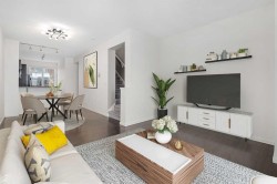Welcome to 111 Ascot Point SW, a beautifully located Aspen Woods 2 bed 2 bath townhouse backing directly onto an environmental reserve and wetlands, a rare offering in West Calgary. This peaceful, nature filled setting offers exceptional privacy and scenic views, while still providing easy access to everyday amenities. Ideally situated on the west side of Aspen Woods, this home is minutes from Aspen Landing Shopping Centre, markets, cafes, transit, top rated schools, and major commuter routes. This two-storey, air conditioned, townhome offers approximately 1,200 sq ft of well-designed living space with 9’ ceilings, maple hardwood flooring, quartz countertops, a breakfast bar, and open living and dining areas ideal for modern living. Upstairs, the primary bedroom overlooks the wetlands, providing a quiet and private retreat. A 5 piece bathroom, a spacious second bedroom and newer washer & dryer complete the upper level. Additional features include an attached double garage, an additional parking pad, private outdoor space, and access to a community terrace overlooking the reserve. An ideal opportunity for professionals or couples seeking a West Calgary townhome in a highly desirable, walkable community. Quick possession available.