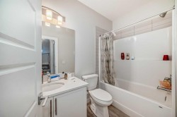 2023 Build | Legal 2-Bedroom Suite | Bonus Room | Deck with BBQ Gas Line. Attention investors! This 2023-built, income-generating property offers a rare opportunity to acquire a spacious home with a legal basement suite in Calgary’s growing northwest community of Ambleton/Moraine. The main unit features 4 bedrooms and 3 full bathrooms, including a main floor bedroom with full bath, plus a bonus room upstairs perfect for families or added tenant appeal. The spacious primary suite includes a walk-in closet and ensuite, with two additional bedrooms and a third full bath.A rear deck with gas line for BBQ provides great outdoor space for upper-level tenants. Inside, the legal basement suite includes 2 bedrooms, 1 bathroom, separate laundry, and a private entrance, finished with durable luxury vinyl plank flooring on both levels.This is a turnkey investment which will provide monthly rental income and equity building for years to come. Ask about the identical neighboring unit at 112 Ambleton Street NW. Fully leased! A rare chance to acquire both sides of a legal 4-unit setup.
