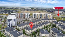 Welcome to this stylish and well-appointed 2-bedroom townhome in the vibrant community of Skyview Ranch. Thoughtfully designed for modern living, this multi-level home offers exceptional comfort, functionality, and convenience, complete with an attached single garage and two private balconies.The bright and open main living area features a spacious layout with large windows, allowing for an abundance of natural light. The contemporary kitchen is equipped with sleek cabinetry, stainless steel appliances, and ample counter space, making meal preparation a pleasure. The adjacent dining and living areas flow seamlessly, perfect for entertaining or everyday living. Step out onto the first of two balconies to enjoy fresh air and sunshine—ideal for morning coffee or evening relaxation.Upstairs, you'll find two generous bedrooms, including a primary suite with beautiful transom windows and 4-pc ensuite. A full bathroom, convenient upper-level laundry, and ample closet space complete the upper floor. The entry level offers room for a home office or flex room and direct access to your attached single garage, providing both security and ease in all seasons.Located in a well-maintained complex close to parks, playgrounds, schools, shopping, and transit, this townhome offers a perfect opportunity for first-time buyers, young professionals, or investors. Don’t miss your chance to own a beautiful home in the growing and family-friendly community of Skyview Ranch. Book your private viewing today!