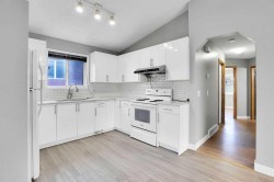 Welcome to this beautifully designed bi-level home located in the highly sought-after community of Martindale. Ideally situated, this property offers convenient access to schools, shopping centers, and public transit.The main level features three well-sized bedrooms, including a spacious primary bedroom with a walk-in closet, along with a full bathroom. The bright living room is enhanced by a large window that fills the space with natural light and flows seamlessly into the dining area. The main floor also boasts a newer, well-appointed kitchen offering both style and functionality.The basement (illegal suite) is equipped with both front access and a separate exterior entrance. It offers two bedrooms, a living area, a kitchen, and a full bathroom—ideal for extended family or mortgage helper potential. Laundry is shared and conveniently accessible from both the upper and lower levels.Completing the home is a double detached garage at the rear, along with ample street parking at the front. This property presents an excellent opportunity for homeowners and investors alike.