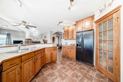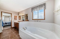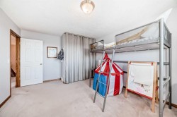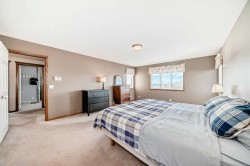 Tucked away on a peaceful cul-de-sac in the highly desirable community of Royal Oak, this beautifully customized home offers a rare ravine-backing location overlooking Royal Oak Natural Ravine Park. Enjoy direct access to walking paths, nearby playgrounds, scenic nature trails, and breathtaking mountain views. No neighbors behind you only nature, trees and peaceful surroundings.With almost 2,700 sq. ft. on the top 2 levels of thoughtfully designed living space, this home features a bright, open-concept layout enhanced by extensive real oak finishes throughout. This home is bigger than average in every aspect and is ready for a big family to call home. The kitchen is ideal for both everyday living and entertaining, highlighted by a generous raised island that comfortably seats six, abundant oak cabinetry with added height, expansive counter space. The dining area easily accommodates large family gatheringsA striking two-way, see-through gas fireplace creates warmth and ambiance between the living room and adjacent den/office. The functional walk-through pantry connects to a well-appointed laundry room with sink and vanity and provides convenient access to the oversized double & 1/2 attached garage. Most garages will barely hold 2 vehicles. This one will do the job and have space left over. Soaring ceilings welcome you at the front entry, complemented by a split oak staircase leading upstairs. One wing hosts three generously (Huge) sized bedrooms, while the opposite side features a spacious bonus room designed as a home theatre with blackout window coverings and built-in speaker wiring. Custom storage systems enhance the primary walk-in closet and an additional bedroom. The primary suite easily accommodates a king-size bed and sitting area and is complete with a luxurious five-piece ensuite featuring a soaker tub and walk-in shower. You should see the view from all 3 sides of the primary bedroom. Outdoor living is equally impressive. Start your day on the northeast-facing front deck as the sun rises, or unwind in the evening on the oversized southwest-facing back deck while enjoying spectacular sunsets. The pie-shaped lot showcases lush landscaping with fruit trees, perennial gardens, stone accents, underground irrigation, and plenty of open lawn space. A lower patio offers a custom two-sided privacy wall, perfect for relaxing or entertaining.Additional highlights include ample garage space suitable for storage or a workshop, a front driveway accommodating at least three vehicles, and elegant cultured stone detailing on the exterior for a refined, executive appearance.Ideally located near the YMCA, Tuscany LRT station, schools, playgrounds, Royal Oak Shopping Centre, and a wide array of amenities, If your family needs big rooms big, big garage, and privacy this home is just for you.