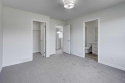 Introducing the COHEN: an amazing, BRAND NEW attached home by EXCEL HOMES offering 1733 SF above grade. This home comes complete with a SIDE ENTRANCE, for ease of future development. Nestled in the vibrant Northeast community of Livingston. Step into a life of luxury and convenience with this stunning residence, where every detail has been meticulously crafted for comfort and style. Enjoy the benefits of living in an established neighborhood that brings a plethora of amenities right to your doorstep, along with swift access to major highways. The COHEN offers a sprawling 1733 square feet of thoughtfully designed living space, perfect for both families and entertaining. The open floor plan, complemented by neutral designer tones, creates a welcoming atmosphere that is both elegant and comfortable. The main floor boasts luxury vinyl plank flooring & 9' knockdown ceilings. The chef-quality kitchen stands as the heart of the home, equipped with ceiling-height cabinets, two banks of pot/pan drawers, and upgraded stainless steel appliances. The expansive engineered stone countertops, a large island with seating, and a convenient pantry make it a dream kitchen for those who love to cook and entertain. On the main floor you'll also find a FLEX ROOM that can be used as a home office, guest bedroom or playroom. and half bath for convenience.. Ascend to the second level where leisure meets luxury in the large central bonus room featuring pot lighting & vaulted ceilings — ideal for movie nights and family gatherings. The primary bedroom is a true retreat, boasting a walk-in closet and a spa-like ensuite. Additionally, two more generously sized bedrooms provide ample space and easy access to the main bathroom. The convenience continues with a laundry room (w/folding counter), strategically located on the same floor. The possibilities extend into the UNDEVELOPED basement - SEPERATE SIDE ENTRY. Step outside to a southeast-facing backyard that's perfect for relaxation and outdoor activities. You'll love the convenience of your rear detached garage 21x12 w/additional gravel parking pad. Ensure the security of interior sprinkler system to main and upper floor. Sod will be provided to front and back yards. Don't miss the chance to own this never-lived-in gem with quick possession available. Experience the blend of luxury, comfort, and convenience in Livingston—welcome to your new dream home at the COHEN.