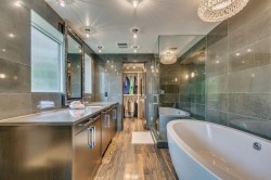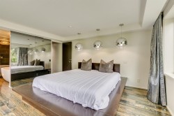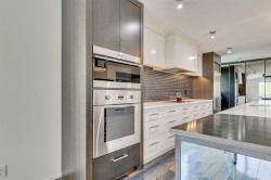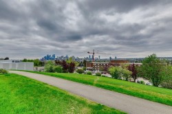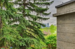 A masterful modern renovation infused with the timeless elegance of 1950s design. Perched on a coveted ridge lot in prestigious Briar Hill, this exceptional hillside walk-out captivates from the moment you arrive. A lush canopy of mature trees and sculpted landscaping welcomes you, setting the tone for what lies beyond. Step into an expansive sunroom bathed in natural light, with soaring skylights and walls of glass that blur the line between indoors and nature. It's the perfect sanctuary to unwind—whether you're sipping a fine wine or indulging in a favourite novel, enveloped in serene beauty. Step into a grand foyer featuring sculptural concrete wall elements and a sleek glass-railed staircase that set the tone for sophisticated living. The front den offers a quiet retreat, while the expansive living room seamlessly flows toward the rear deck, perfectly framed by mature evergreens that provide unparalleled privacy. Crafted for both style and function, the kitchen and dining areas are an entertainer’s dream. The kitchen exudes contemporary glamour with pristine white cabinetry, a mirrored pantry and backsplash, and mid-century lighting. An oversized eat-up island anchors the space, offering abundant storage, while a suite of top-tier appliances, including a Viking wall oven, Miele microwave and dishwasher, a Sub-Zero refrigerator, and a Gaggenau cooktop complete the look. The adjoining dining room is truly impressive in scale and design, offering sweeping views of the Downtown skyline, a stunning backdrop for unforgettable gatherings. Descending to the lower level, you're greeted by rich hardwood floors and subtle stair lighting that create an inviting ambiance. This level is thoughtfully designed as a private retreat, with dedicated spaces for work and rest. The sophisticated home office is enclosed with smoked glass doors and enhanced by custom built-in cabinetry, while a striking feature wall conceals cleverly integrated storage. Three generously sized bedrooms are tucked away on this level, along with a beautifully appointed full bathroom. The primary suite is set apart for ultimate seclusion, enveloped by expansive windows that frame the surrounding landscape. Indulge in a lavish ensuite featuring a deep soaker tub, a sleek glass enclosed shower, and a fully customized walk-in closet—crafted for both luxury and functionality. For the gardening enthusiast, the secluded rear and side yards offer a canvas to create your own private outdoor sanctuary; lush, serene, and tailored to your vision. Thoughtfully integrated into the design, an expansive under deck storage area provides a secure and discreet solution for all your seasonal essentials, ensuring both elegance and practicality are maintained. This Homs is truly in an unbeatable location ideally situated within walking distance to multiple recreational facilities, public transit, the downtown core, Kensington, SAIT, schools, and both the Foothills and The Alberta Children's Hospital.