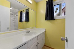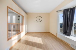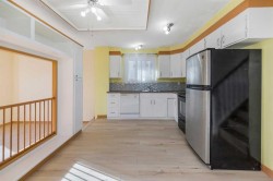 Welcome to this beautifully maintained four-level split, Nestled in a family friendly community, you will be just steps away from 2 public schools, dog park and playgrounds, thoughtfully upgraded and truly move-in ready. Recent improvements include a few new windows, new flooring in the kitchen area, new paint,—offering peace of mind for years to come.The main level showcases a sun-filled, south-facing living room accented by an elegant bay window, seamlessly flowing into the well-appointed kitchen and adjacent dining area—ideal for both everyday living and entertaining. The upper level is highlighted by a generous primary retreat featuring his-and-hers closets, a four-piece ensuite, and patio doors opening to a private deck, perfect for morning coffee or evening relaxation.Two additional bedrooms and a full bathroom are located on the lower level, providing excellent flexibility for family, guests, or a home office. The basement completes the home with a comfortable recreation room, along with dedicated mechanical, laundry, and storage spaces.Additional comforts include central air conditioning. Ideally situated within walking distance to Falconridge Elementary School, Terry Fox Junior High School, transit, and shopping, this home offers both convenience and lifestyle in a well-established community.