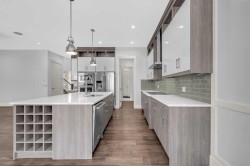 **OPEN HOUSE SATURDAY BETWEEN 1:30PM-4PM & SUNDAY JAN 25 BETWEEN 12PM-3PM** | Exceptional Luxury Living in Evanston – 2-Storey Executive Home | 5 Bedrooms + Den (2 Ensuites) | Finished Basement w/ Side Entrance | A/C | Stucco Exterior. Welcome to this immaculately maintained and extensively upgraded luxury home located in the highly sought-after community of Evanston. Perfectly designed for large families and multi-generational living, this impressive 2-storey residence offers a thoughtfully planned layout with over 3,000 sq. ft. of living space across three levels, including 4 spacious bedrooms upstairs, a main-floor den, and a fully finished basement.As you step into the grand foyer, you're greeted by 9-foot ceilings, warm hardwood flooring that flows throughout the main level, and an abundance of natural light. The inviting living room is anchored by a beautifully tiled centered gas fireplace, creating a cozy and elegant space to unwind or entertain.The heart of the home is the chef-inspired kitchen, featuring ceiling-height cabinetry, high-end stainless steel built-in appliances, sleek quartz countertops, and an expansive island with bar seating — ideal for casual dining or hosting guests. A spacious walk-through pantry leads conveniently to the mudroom and garage, offering additional storage and functionality. Adjacent to the kitchen is a generous dining area that overlooks the fully landscaped backyard, creating a seamless indoor-outdoor experience.Also on the main level is a flexible den space, perfect as a home office, guest room, or fifth bedroom, offering convenience and versatility for changing family needs.Upstairs, the home continues to impress with 4 generously sized bedrooms, each offering ample closet space and large windows. Three of the bedrooms feature private ensuite bathrooms, making this an ideal setup for families or guests who value privacy. The primary suite is a true luxury retreat, complete with a large walk-in closet and an opulent 5-piece ensuite featuring dual sinks, a deep soaker tub, separate glass shower, and high-end tile finishes throughout. A bright and open bonus room completes the upper level — perfect as a secondary living space, playroom, or media lounge.The professionally finished basement offers even more space to live and entertain. With a separate side entrance, this level includes a huge family/recreation room, a fully equipped wet bar, a spacious bedroom, and room to potentially add an additional bathroom or kitchen setup for future rental income or extended family living. Outside, the home is complete with a fully landscaped and fenced backyard, ideal for summer BBQs, kids’ play, or quiet evenings outdoors. The durable stucco exterior adds both style and low-maintenance protection, while the addition of central air conditioning ensures year-round comfort. Every inch of this home has been meticulously designed and upgraded to offer style, space, and functionality.