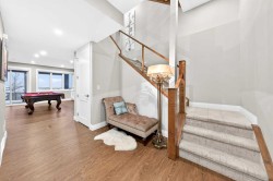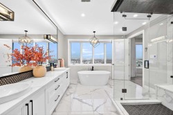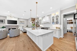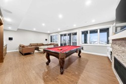 Luxury Walkout Home | Triple Attached Tandem Garage | All Upper-Level Bedrooms Ensuite |Experience luxury and comfort in this 2-storey walkout Hamptons home, nestled on a quiet cul-de-sac, backing onto a walking path and offering Unobstructed view of the North. Boasting over 4,800 sq.ft. of sophisticated living space, this home is designed for both entertaining and family living.The main floor welcomes you with a dramatic 10-ft ceiling, upgraded lighting, and engineered hardwood flooring throughout. At the heart of the home, the gourmet white Kitchen is a chef’s dream, featuring a large centre island, ample cabinetry with golden hardware, stainless steel appliances including an Electrolux full-size side by side Fridge and Freezer, Fulgor Milano 6-burner stove, wall oven, built-in coffee machine, beverage fridge, two dishwashers, and a walk-through pantry with sink and abundant storage. The Kitchen opens to the Family Room and Dining Room, both with double sliding patio doors that flood the space with natural light and provide access to a full-size deck with gas hookup. From the deck, enjoy Unobstructed view of the north and walking path, extending to distant horizons, and a stunning night view that’s simply breathtaking. A stunning open-riser staircase with stain-grade glass railings connects the main and upper levels, enhancing the open and airy ambiance.The upper level features 9-ft ceilings and engineered hardwood flooring throughout. A centre Bonus Room provides the perfect space for a media lounge or children’s play area. The luxurious Primary Suite, along with two secondary suites, include heated floors, a spa-inspired ensuite with double vanity, steam shower, freestanding soaking tub, and a spacious walk-in closet with organizers. Three additional bedrooms each include their own ensuite and walk-in closet, complemented by an upper-level laundry room with sink and cabinetry.The fully finished walkout basement features 9-ft ceilings and luxury vinyl plank flooring throughout, creating a bright and upscale feel. It offers a large Recreation Room with a gas fireplace and a custom bar—perfect for entertaining—along with two additional bedrooms and a 3-piece bath for guests or family. Double sliding patio doors from the Recreation Room open to a full-size covered patio, seamlessly extending to a fully landscaped backyard with ample space for outdoor gatherings and a gate that provides direct access to the adjacent walking path.Additional highlights include a triple attached tandem garage, central A/C, two furnaces, upgraded lighting, and meticulous high-end finishes throughout.Situated in the highly desirable Hamptons NW, this home offers easy access to parks, scenic walking paths, playgrounds, and a vibrant community hub, with shopping, dining, and major roadways just minutes away. This luxury home offers the perfect combination of elegance, comfort, and family-friendly living in Hamptons NW.