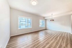 Welcome to this bright and well-maintained corner-unit townhouse in Riverstone Manor by Cedarglen Living—an ideal home for first-time buyers or young families. Just a few years old and cared for with pride, this move-in-ready property offers modern finishes, a practical layout, and a comfortable lifestyle in one of Calgary’s most family-friendly communities.The main floor features a welcoming front foyer, a dedicated office or homework space, and an open-concept living and dining area filled with natural light. The functional kitchen is equipped with quartz countertops, full-height cabinetry, stainless steel appliances, a large island, and an oversized pantry—perfect for family meals and everyday living.Upstairs offers three generously sized bedrooms, including a spacious primary bedroom with a 4-piece ensuite, dual sinks, oversized tiled shower, and a large walk-in closet. A second full bathroom and convenient upper-level laundry make daily routines easy for busy families.The basement provides a flexible space ideal for a kids’ play area, home gym, or additional storage, with potential for future development. Enjoy the convenience of a double detached garage and the benefits of a low-maintenance, pet-friendly complex (board approval required).Located along the Bow River, Riverstone in Cranston offers a safe and welcoming environment with access to walking and biking paths, nearby parks, and Fish Creek Park. Families will appreciate access to Century Hall through the Cranston Residents Association, featuring a splash park, skating rink, tennis courts, and fitness facilities. Close to schools, shopping, restaurants, public transit, and with easy access to Deerfoot Trail, this home offers everything a growing family needs.A wonderful opportunity to step into homeownership in a well-established and highly desirable community.
