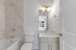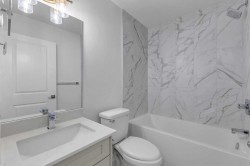 Welcome to your BRAND NEW 3-storey townhome in the vibrant community of Belmont, Calgary. This stunning home features 2 bedrooms, 2.5 bathrooms, and offers 1,358 sq.ft. of thoughtfully designed living space. The bright, open-concept main floor boasts a spacious living area with large windows, a modern kitchen with quartz countertops, full-height cabinetry, stainless steel appliances, and a cozy dining area that’s perfect for everyday living or entertaining. Step out onto your private balcony to enjoy your morning coffee or evening sunsets.Upstairs, you’ll find two generously sized bedrooms, each with its own full bathroom, plus a conveniently located upper-floor laundry. The entry level includes a tandem double attached garage, offering ample space for parking and storage.Located in Belmont, one of Calgary’s fastest-growing communities, surrounded by scenic pond walkways, playgrounds, and parks. Just steps from a future commercial plaza featuring a Tim Hortons, daycare, gas station, and a bus stand right in front of the complex.Enjoy quick access to Stoney Trail, Macleod Trail, and the future LRT extension, making commuting easy. Pet and rental friendly, this home is perfect for first-time buyers or investors seeking modern living, great value, and a thriving community lifestyle.