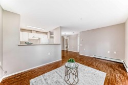 Welcome to your new home in this well located, amenity rich building! This rare 1 bedroom plus den is on the main floor for ease of access and backs to the serene and private green space at the back of the building- it's like having a huge yard, without having to maintain it! The very spacious layout opens to a large flex/dining space when you step in. Off to one side is the den that works great for office, craft or even storage space. The kitchen is efficient with its bright lighting and good use of space and opening to the living room so you can easily serve your meals for casual TV nights. Step onto the west facing deck and feel like you're in your own yard. The bedroom is just the right size and the bath is oversized allowing you tons of space to get around. Just painted in a lovely neutral with LVP floors, there is nothing for you to do, just move right in. Building amenities include multiple social areas and rec areas (with programs!) both inside and out, games, library, craft room and beauty salon as well a guest suite that can be rented for your out of town guests. This 55+ building offers the very best for vibrant mature living with friendly neighbours, activities and a fantastic sense of community. All of this and just steps away from the LRT, YMCA and shopping and restaurants. Yes it is that perfect, and affordable too!