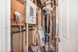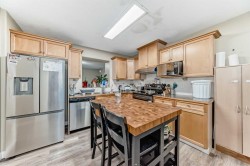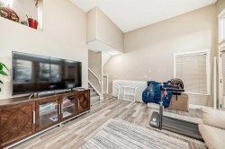 Nestled within a peaceful, tree-lined enclave of Dover, this exceptional three-bedroom, three-and-a-half-bath townhome offers a rare blend of space, brightness, and calm urban living. From the moment you arrive, the attractive exterior and adjacent visitor parking make a great first impression. Step inside to a thoughtfully planned layout that effortlessly adapts to modern life. The attached garage leads to a fully developed lower level featuring a comfortable flex space, a three-piece bathroom, and endless possibilities—perfect for overnight guests, a workout area, or a private retreat. The main living space is truly striking, with dramatic 16-foot ceilings creating an open, airy atmosphere, anchored by a sleek electric fireplace that adds warmth and style. A few steps above, the sun-filled kitchen and dining area become the heart of the home, showcasing solid maple cabinetry, stainless steel appliances, and a layout designed for both everyday living and entertaining. Through the patio doors, an expansive deck invites you to relax and unwind while overlooking a quiet, partially fenced green space—ideal for peaceful mornings or tranquil evenings. A convenient powder room and laundry area complete this level. Upstairs, you’ll find three well-proportioned bedrooms, including a spacious primary retreat that easily accommodates a king-sized bed, along with a walk-in closet and a beautifully finished four-piece ensuite. Two additional bedrooms and a full bathroom provide flexibility for family, visitors, or a dedicated home office. This bare land condominium offers the best of both worlds—independent ownership with low-maintenance convenience—within a well-managed and pride-filled community that has seen recent improvements to irrigation, parking areas, and drainage. Located just minutes from downtown, commuting is effortless with quick access to Deerfoot Trail, Memorial Drive, 17th Avenue, and the airport. Transit is close at hand with a nearby bus stop and a short drive to the Franklin LRT station. Dover itself is rich with outdoor amenities, including parks, pathways, playgrounds, rinks, a splash park, dog park, and scenic viewpoints that capture both city and mountain vistas. Well-regarded schools are close by, making this location as practical as it is appealing. This is more than a home—it’s a lifestyle defined by light, space, and connection, where every return feels welcoming and every day feels just a little easier.