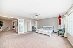 GREAT VALUE | OVER 2,670 SQ FT OF ELEGANT LIVING SPACE. This stunning two storey home offers timeless elegance and exceptional space.Step inside to soaring vaulted ceilings and classic French doors leading into a beautiful den. The main floor features a striking curved staircase, a bright all-white kitchen with abundant cabinetry, an inviting living area, a spacious family room, and a large formal dining room ideal for gatherings and entertaining. Natural sunlight streams throughout the home with its expansive windows and a charming skylight, while a convenient main-floor laundry adds everyday practicality.Upstairs, you’ll find three generous bedrooms, including a luxurious primary suite with a walk-in closet and a private 4-piece ensuite. The two additional bedrooms are bright and roomy, perfect for family or guests.The fully developed basement extends the living space with a large recreation area, an additional bedroom, and a 4-piece bathroom—offering endless possibilities for relaxation, entertainment, or hobbies.Located near James McKevitt Road, Macleod Trail, Shawnessy Boulevard, Evergreen Street SW, and with Stoney Trail just minutes away, this home offers both convenience and connectivity. Some updates are the hardwood floors, some windows and the Ploy b as been replace in the basement