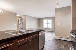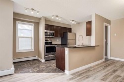 A rare opportunity to own a beautifully appointed CORNER, TOP-FLOOR home filled with warmth, sunshine, and endless natural light. This gorgeous 2-bedroom, 2-bathroom residence with a bonus flex space offers an exceptional layout, NEW LVP flooring creating a perfect space plus underground parking amazing stall! Vibrant location that places you minutes from downtown and every amenity imaginable.From the moment you walk in, the sense of openness is undeniable. The expansive front foyer feels more like an extension of your living space than an entryway—offering the perfect spot for a cozy coffee nook, a reading corner, extra storage, or even a small workspace. It’s a welcoming introduction to a home that feels both spacious and inviting.The building itself is undergoing a fresh transformation with new flooring and paint, giving the common areas a clean, contemporary look. Your underground parking stall is truly one of the best in the complex: oversized, extremely convenient, and located right outside the basement access door for effortless everyday living.Inside the unit, the thoughtful design places both bedrooms on opposite ends, creating ideal separation whether you’re hosting guests, sharing with a roommate, or simply wanting privacy. The Primary Suite is bright and comfortable, featuring a large walk-through closet and a private 3-piece ensuite. The second bedroom is generously sized and easily accommodates a queen bed.The heart of the home is the stunning open-concept kitchen and dining area, beautifully lit by natural light pouring through the corner windows. The kitchen offers excellent storage, great counter space, and room for either a small café-style table or an additional moveable island—perfect for those who love to cook or entertain. The dining area flows smoothly into the spacious living room, where large windows and the top-floor vantage point create a bright, uplifting atmosphere all day long.From the living room, step onto the sun-soaked corner balcony, an inviting outdoor retreat ideal for morning coffee, evening wine, container gardening, or enjoying the warmth of the afternoon sun. With its open exposure and extra space, it truly extends your living area outdoors.Complete with in-suite laundry, pet-friendly bylaws, low condo fees, and unbeatable access to Deerfoot Trail, transit, shops, parks, and Calgary’s downtown core, this home offers the perfect blend of convenience, comfort, and style. Top-floor sanctuary is ready to welcome its next owner to a lifestyle of ease and sunshine. (DISCLOSURE the unit is vacant and is virtually staged with options)CONDO FEES $517.00