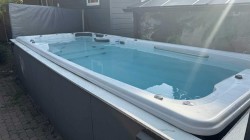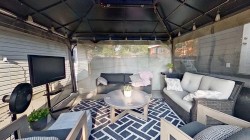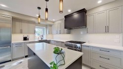 Experience comfortable small-town living just minutes from downtown in this fully renovated bungalow, situated on a spacious pie-shaped lot within a quiet cul-de-sac lined with Elm trees in Mayland Heights. This residence has been meticulously updated, to ensure warmth during winter and coolness in summer. Luxurious amenities include heated floors throughout the main level with individual room controls for consistent temperature, a well-appointed kitchen equipped with high-end appliances, gas fireplace and large new windows providing ample natural light. For summer comfort, the home is fitted with air conditioning.Smart lighting systems allow easy control of all fixtures, while the primary bathroom offers a spa-like atmosphere with a dual shower, jetted tub, heated towel warmer, dual sinks, and generous storage. The upstairs laundry provides access to a heated 19x7 swim spa, complete with a heated step for winter safety. The basement features stretch ceilings for an open feel, spray foam insulation for thermal efficiency, a golf simulator area with 10-foot ceilings, theatre space with atmospheric galaxy lighting, and a gym area with laundry hookups. Additional upgrades include an on-demand hot water tank, new windows, furnace, central vacuum, and extensive storage options. Outdoors, the property includes an island and Viking BBQ with searing station for grill lovers, a heated pergola, heated sidewalks for comfortable outdoor entertainment, irrigation system, RV parking pad with electrical outlet, and a heated double car garage. The substantial lot provides opportunities for future redevelopment.