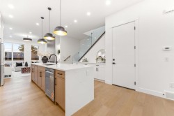 Welcome to Refined Living in Rosscarrock ! Crafted for those who appreciate fine design and smart investment.Luxury, comfort, and convenience come together beautifully at 1444 43 Street SW, an exquisite modern infill designed for today’s lifestyle. Perfectly positioned in the sought-after community of Rosscarrock, this home is within walking distance to the Westbrook C-Train Station, Westbrook Mall, Walmart, Starbucks, and local restaurants — offering true inner-city living without compromise.Step inside and be greeted by 10-foot ceilings, an open and airy floor plan, and engineered hardwood flooring on the main level. The chef-inspired kitchen is a showstopper, featuring built-in premium appliances, a massive extended island with a dual waterfall quartz countertop, full-height cabinetry, and a sleek quartz backsplash. Designed to impress, this kitchen perfectly balances luxury and everyday functionality.The living area exudes elegance with its feature gas fireplace, glass-railed staircase, and abundance of natural light, creating a warm and welcoming atmosphere ideal for gatherings or quiet evenings at home.Upstairs, the primary suite is a serene retreat — highlighted by a vaulted ceiling, custom-designed closet, and a luxurious five-piece ensuite with a soaker tub, double vanity, glass-enclosed shower, and in-floor heating for a spa-like experience. Two additional bedrooms, a full bath, and a laundry room complete the upper level, designed with both comfort and practicality in mind.A standout feature of this property is the fully LEGAL two-bedroom basement SUITE with its own private side entrance, ideal for generating rental income or hosting extended family. The suite includes a full kitchen, private laundry , and sound-reduction construction for added privacy.Every element of 1444 43 St SW has been crafted with precision and purpose, offering an elevated lifestyle in one of Calgary’s most desirable inner-city communities.