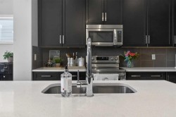 Step into lake community living with this beautifully designed two-storey home at 146 Marquis Common SE in Mahogany, offering 3 spacious bedrooms, 2.5 bathrooms, and over 1,651 sq. ft. of thoughtfully planned space. The main floor welcomes you with a bright south-facing living room and cozy fireplace, soaring 9-foot ceilings, and a chef-inspired kitchen with quartz countertops, oversized island, and built-in desk. Upstairs, you’ll find a bonus room perfect for family nights, along with a primary suite featuring a walk-in closet and 4-piece ensuite, completed by another two good-sized bedrooms. The unfinished basement provides endless potential for customization. The house comes with newly-built double garage . With charming curb appeal, a welcoming front porch, and access to Mahogany’s exclusive lake and beach club amenities, this home offers the perfect blend of modern comfort and recreational lifestyle. Located close to schools, playgrounds, shopping, and easy access to 52nd Street and Stoney Trail, this property is ideal for families, professionals, or investors seeking value in one of Calgary’s most desirable communities. Don’t miss your chance to own in Mahogany—book your private showing today and make 146 Marquis Common SE your new home!