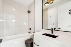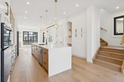 OPEN HOUSE on Sunday, Jan 25 between 1:00 - 4:00pm! Stunning Semi-Detached Infill with Legal Suite in Bonavista. BRAND NEW, custom-built semi-detached infill in the desirable community of Bonavista offers the perfect blend of luxury living and practicality. With over 3180 sqft. of elegant living space including an extended 3-bedroom legal basement suite, this home provides the flexibility of multi-generational living or a fantastic mortgage helper.The main level is designed for both style and function, featuring 10-ft ceilings, a bright open-concept layout, and oversized windows that fill the space with natural light. The kitchen is well appointed, with ceiling-height cabinetry, a massive island with waterfall quartz counters, and premium stainless steel appliances. The living room is bright and welcoming, with modern finishes and built-in cabinetry that offers plenty of functional storage. Dining room with double sliding doors overlooking the spacious backyard. Upstairs, you’ll find a spacious primary retreat with soaring 16ft vaulted ceilings, walk-in closet with built-ins, and a spa-inspired ensuite featuring heated floors, freestanding soaker tub, and a fully tiled glass shower with steam. Two additional bedrooms with 10ft tray ceiling, a 4-piece main bath, and an upper laundry room add everyday convenience.The professionally developed legal suite has its own private side entrance and offers over 1121 sqft. of developed living space. Highlights include 3 large bedrooms, 2 full bathrooms, in-suite laundry, a generous living/dining area, and a full kitchen with quartz counters, ceiling-height cabinets, and stainless-steel appliances. Comfort is maximized with in-floor heating (roughed in) and 4” rigid insulation beneath the slab for year-round warmth.Set on a generous 128-ft deep lot, this home offers plenty of outdoor space with a finished concrete patio, and a paved back alley. Bonavista is one of Calgary’s most established and desirable neighbourhoods—renowned for its safety, quiet streets, excellent schools, and close proximity to shopping, restaurants, parks, and transit.This is a rare opportunity to own a thoughtfully designed infill in one of Calgary’s most coveted areas—complete with a full legal suite that adds value and flexibility. Book your private showing today and experience everything this incredible home has to offer.