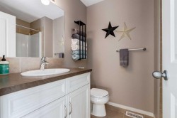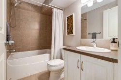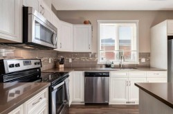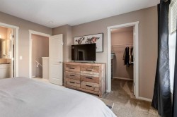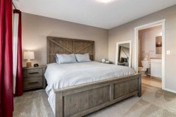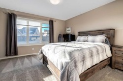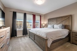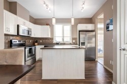 Welcome to a home that truly has it all; NO CONDO FEES, FULLY DEVELOPED, A DOUBLE DETACHED GARAGE, AIRCONDITIONING and the COVETED LAKE LIFESTYLE! This bright and open floor plan features 9’ ceilings, abundant natural light and updated, modern finishes throughout. The kitchen is designed for both function and entertaining, showcasing quartz countertops, stainless steel appliances, a sleek backsplash, pantry and kitchen island. The kitchen seamlessly opens to the dining and living area, creating an ideal layout. A convenient two piece bathroom and a functional mudroom complete the main floor, adding to the home’s thoughtful and practical design. Upstairs, you’ll find two spacious primary bedrooms, each complete with a private ensuite and walk in closet; perfect for families, guests, or shared living. The builder developed basement adds exceptional value, offering a dedicated laundry room, a second living or workout space, an additional 4 piece bathroom and a third bedroom or den. Outside, enjoy the south facing, fully fenced backyard that provides privacy and sunshine. Ideally located just steps from the lake and playgrounds and within walking distance to shops, cafés, and restaurants, this home delivers lifestyle, convenience and comfort in one exceptional package. Book your private showing today!