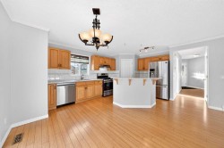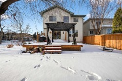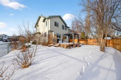 Spacious Corner-Lot Family Home with East-Facing Backyard in Harvest Hills | This family-friendly 2-storey home is ideally situated on a corner lot with a generous 57-ft wide backyard, featuring greenspace beside the home and no sidewalk, offering extra space and privacy. With 3+1 Bedrooms, a main Floor Den, a massive Bonus Room, and over 2,540 sq ft of developed living space, this home provides exceptional flexibility for growing families. The east-facing, fully landscaped backyard is perfect for enjoying morning sunlight and summer evenings outdoors.A welcoming Front Porch creates great curb appeal. Inside, the Main Level showcases gleaming hardwood flooring throughout and begins with a spacious Den, ideal for a home office or study. The heart of the home opens into a bright open concept living area featuring a generous Living Room with gas fireplace, seamlessly connected to the Kitchen with Quartz Countertops, stainless steel appliances, Centre Island with raised eating bar, and pantry. The adjoining Breakfast Nook overlooks the backyard and leads to the Deck with gas hookup and Gazebo—perfect for summer BBQs and entertaining.The upper Level is highlighted by a massive Bonus Room with higher ceiling and ceiling fan, offering a comfortable retreat for family gatherings or movie nights. The Primary Bedroom features a 4pc ensuite with soaker Tub and a walk-In closet with closet organizer, while two additional Bedrooms and a 4pc Bath complete this level.The fully finished basement features new carpet throughout and extends your living space with a large Recreation Room with fireplace, a 4th Bedroom, and a Storage Room, making it ideal for guests, teens, or extended family. Completing this home is the Double Attached Garage, offering convenient parking and extra storage space.Located in the desirable community of Harvest Hills, residents enjoy nearby parks, walking paths, schools, shopping, and transit, with easy access to Deerfoot Trail and Stoney Trail, providing quick commutes to Downtown Calgary, the Airport, and major amenities.