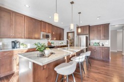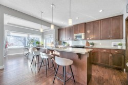 AMAZING LOCATION & AN IMMACULATE FAMILY HOME!Welcome to this beautifully maintained 2,160 sq. ft. two-storey home with a sunny west-facing backyard, perfectly situated in the sought-after community of Evergreen. Enjoy the convenience of walking distance to top-rated schools, with Fish Creek Park, shopping, everyday amenities, and quick Stoney Trail access all close by.The bright and inviting main floor features 9’ ceilings, a front den ideal for a home office, and a warm, open-concept layout designed for everyday living and entertaining. The spacious kitchen offers an abundance of cabinetry, stunning granite countertops, subway tile backsplash, gas stove, and a massive walk-through pantry, flowing seamlessly into the dining and living areas. The cozy gas fireplace anchors the living room, while air conditioning keeps the home comfortable year-round. A main-floor laundry room is conveniently located at the back entrance.Upstairs, the thoughtful layout continues with a front bonus room—perfect for movie or game nights—along with two generous bedrooms, a 4-piece bathroom with excellent storage, and a private primary retreat tucked at the back of the home. The primary bedroom features a spa-inspired ensuite with a soaker tub, glass-enclosed shower, and a large walk-in closet.Outside, enjoy a large deck and low-maintenance, fully fenced backyard, ideal for relaxing or entertaining. Additional highlights include hardwood, tile, and carpet flooring throughout and an unspoiled basement ready for your personal touch. A fantastic home in an unbeatable location—move-in ready and waiting for its next owners.