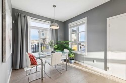 This beautiful 3-bedroom CORNER END UNIT shows pride of ownership in the vibrant community of Walden. There is over 1500sq feet featuring a lovely neutral palette with hardwood floors. Upon entry you will notice the bright open concept layout. The chef's kitchen is very light and stylish with stainless appliances and quartz countertops that all open up to an expansive living room with built-ins. The dining room is adjacent to the kitchen and has patio doors facing the deck equipped with a gas line for BBQ. There is also a convenient 2-piece bath and a broom closet to finish off this level. Upstairs there is a gorgeous Master suite with a spa like ensuite. On this level there are two more good sized bathrooms, laundry and a family bath with a large soaker tub. The main level is home to a foyer that leads to the double tandem garage that can fit two cars or part can be used as a gym with an attached electric heater. At the entrance there is a SW outdoor patio sitting area fenced in that is lovely for the summer evenings. Other features include an air-conditioner, humidifier, fresh air return system and loads of storage. Don't miss out on this ideal location with a pergola, fire pit and Adirondack chairs to enjoy right at your doorstep. There is also easy access to schools, restaurants, shopping, major highways and walking/bike trails. This is a great open feeling corner lot perfect for professionals and young families. Call for your showing today.
