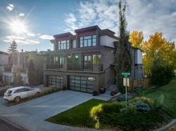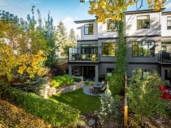 Welcome to an inner-city English garden living - with 2,847 sq ft of luxury situated in the vibrant community of Bankview. Offering 5 bedrooms throughout, this semi-detached walk-out home is perfect as an executive and/or family home. Built by luxury builder Grandscape Homes with superior finishes and completed by interior designer Denise Panagakos, this stunning home blends contemporary design with comfortable living finishes. The S & W facing main level has 10 ft ceilings, a two-storey front foyer and floor to ceiling windows, flooding the home with natural light. The gourmet kitchen has a large island with breakfast bar, pantry plus amazing storage. Top end appliances include a 5 burner Wolf Cooktop, dual Wolf wall ovens (one convection) and an integrated Sub-Zero fridge. The open living/dining area with gas fireplace leads to a south facing balcony through large sliding doors. On the 2nd floor, French doors lead to the private primary suite that occupies the entire level. Complete with a gas fireplace, a large walk-in closet, and a north facing balcony with downtown views. The 5-pc ensuite has a soaking tub, double vanity, a large steam-shower, and heated flooring. The 3rd level has 2 large bedrooms, both with walk-in closets. This floor also includes a 5-pc bathroom and a laundry room with sink and storage. On the 4th level is a very large loft bedroom/suite with downtown views and a 4-pc bathroom - perfect as a bedroom, office space or living area. The fully finished walk-out level has heated polished concrete floors, a 5th bedroom or office, and a 3-pc bathroom with an oversized walk-in shower. This level is the perfect entertaining area with a wet bar and wine room off the sitting area and walk-out covered patio. The sunny south facing back yard is professionally landscaped with plenty of shrubs and trees creating a private and quiet oasis. Backing directly onto a city park the home's multiple outdoor living spaces will bring the outside in, either from the main living area balcony, or the large lower patio. Throughout the entire home you will find custom millwork cabinets providing ample storage. This clean air home has high efficiency heating/ventilation and includes central air conditioning. The double attached finished garage also has heated floors. Its minutes to downtown and walking distance to the shops, restaurants and amenities of either 17th Avenue or Marda Loop - also close to Mount Royal, Downtown Core, University of Calgary, Foothills Hospital Campus, SAIT & Kensington. Experience both quiet park and vibrant inner city living & book a showing with your realtor today!