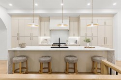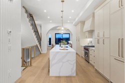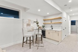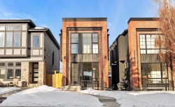This extraordinary brick-exterior home is set in one of the most desirable locations and built by Jerry Homes with a thoughtfully designed, functional floor plan. A spacious foyer welcomes you into the main level with soaring 10-foot ceilings, a dining area accented with custom wainscoting, and a stunning kitchen featuring a massive 12-foot island, hidden walk-in pantry, high-end built-in Wolf and Dacor appliances, quartz countertops with under-cabinet lighting, and elegant gold accents. A beautifully crafted archway separates the kitchen from the great room, anchored by a custom multi-tier gas fireplace, while the mudroom provides ample storage. Large windows throughout the home fill every level with natural light, enhancing the open and airy design. Upstairs, 9-foot ceilings frame a lavish primary suite with two large walk-in closets and a spa-inspired 5-piece ensuite fully wrapped in designer tile, complete with steam shower rough-in, in-floor heating, and a soaking tub. Two additional bedrooms, a 3-piece bath, and a full laundry room complete the upper level. The fully developed basement includes in-floor heating rough-in, a spacious rec room, wet bar, fourth bedroom, and a 3-piece bath. Additional features include rough-ins for A/C, built-in ceiling speakers, an alarm system, and exterior cameras. Ideally located near top schools, parks, and the shops and restaurants of Marda Loop, this home blends quiet luxury with unmatched convenience. Call today to book your tour!