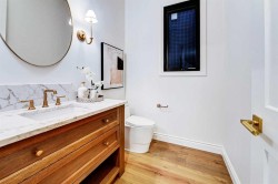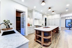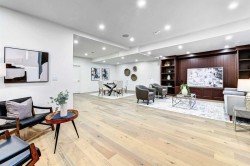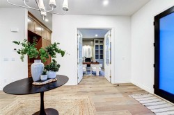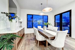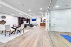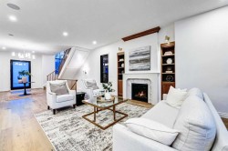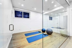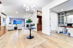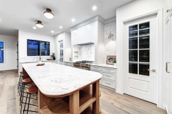 Set on a quiet street in the heart of Marda Loop, The Bardot is an exceptional custom residence that blends refined French-Country character with contemporary luxury. Thoughtfully designed and built by Cedar Rock Homes with interiors curated by Aly Velji Designs, this home offers four bedrooms, 4.5 bathrooms, and a rare triple-car garage. The striking exterior showcases a sophisticated mix of stone, stucco, and Hardie panel, accented by an aluminum cedar soffit entry, statement front door, and custom aluminum Lux windows with black interior cladding. The fully landscaped and fenced backyard is designed for low-maintenance enjoyment and features a generous composite patio with aluminum and glass railing, creating a private outdoor retreat. Inside, wide plank white oak engineered hardwood flooring flows throughout all levels, complemented by solid core doors and custom site-built cabinetry with wood dovetail drawers. Soaring 10-foot ceilings on the main floor and 9-foot ceilings on both the upper and lower levels enhance the home’s bright and open feel. The main living area is anchored by a cozy gas fireplace and transitions seamlessly into the chef-inspired kitchen featuring a premium JennAir appliance package, including a 48-inch gas range, 48-inch panelled refrigerator, panelled dishwasher, and a microwave drawer integrated into the island with additional storage on both sides. A curved quartz slab island, custom cabinetry, and a bespoke hood fan create a stunning focal point, while the adjacent butler’s pantry adds extended storage and elevated lighting. The dining space is highlighted by a custom oak sideboard, and a spacious mudroom with tailored millwork ensures everyday functionality. A private front office is thoughtfully designed with French doors, floor plugs, and custom glass-front cabinetry. Upstairs, three generously sized bedrooms each feature walk-in closets and private ensuites with heated tile flooring. The primary retreat is highlighted by vaulted ceilings and a spa-inspired ensuite complete with an oversized steam shower with dual rain heads, a freestanding tub, solid slab stone backsplash, and custom hanging mirrors. A beautifully finished upper-level laundry room with sink, hanging rod, and custom cabinetry completes the floor. The fully finished basement expands the living space with a gym, TV and games area, wet bar with beverage fridge, full bathroom, and ample storage. Mechanically, the home is equipped with dual-zone high-efficiency furnaces with humidifiers, along with rough-ins for in-floor basement heating, air conditioning, central vacuum, speakers, security system, and exterior cameras. Every detail of The Bardot reflects intentional design, superior craftsmanship, and timeless appeal, all just steps from Marda Loop’s vibrant shops, restaurants, parks, schools, and only minutes from downtown Calgary