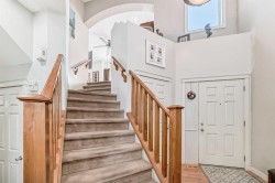 Welcome to this charming forever family home in the heart of the New Brighton. This impeccably maintained, former show home is nestled in a quiet cul-de-sac, footsteps away from schools and the New Brighton clubhouse with all the amenities & convenience of this sought after community. Situated on one of the few oversized meticulously landscaped fenced pie lots offering expansive custom wood decks, with pergolas’ & a gazebo fully surrounded by flower and vegetable gardens for endless enjoyment, serenity and outdoor entertaining. We Invite you inside to experience this spacious 2 story 3 bedroom + bonus room residence where you will find a generous open layout, offering high ceilings with an abundance of natural light. Boasting a double story foyer, art alcove features along with drywall archways seamlessly leading to a central gathering, eating and cooking area complete with walk-in pantry, breakfast bar off the island to enjoy your morning beverage. The large great room features a rustic stone fireplace and dining alcove with view of the sunshine filled garden oasis. With a perfect balance of hardwood floors, matching built in kitchen cabinetry and upgraded matching Samsung stainless steel appliances to complete the experience. Conveniently located, a powder room, and main floor laundry leading to an oversized double car garage. Take the staircase up to your bonus room retreat, one of the beloved favorite places in the house! Cozy up in front of the floor to ceiling stone clad, gas fireplace. Surrounded by light filled windows, high ceilings complete with an ornate ceiling fan. The second floor offers a large master bedroom overlooking the garden plus full ensuite & walk-in closet. The two additional bedrooms plus bathroom are perfect for a growing family. Travel down to the newly developed lower level and you will find flexible spaces to fit work, leisure or entertaining guests including a 3pc bathroom. Each level offers a well-appointed, harmonious, natural color palette accentuated perfectly by rich custom drapery side panels throughout. Additional recent upgrades to note, a new Samsung electric stove (2025), new roof (2023) new furnace (2021). Take advantage of this exceptional opportunity, to enjoy this idyllic property. Book your tour as soon as you can!