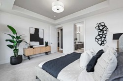 The Streams of Lake Mahogany present an elevated single-level lifestyle in our stunning Reflection Estate homes situated on Lake Side on Mahogany Lake. Selected carefully from the best-selling renowned Westman Village Community, you will discover THE CASCADE, a home created for the most discerning buyer, offering a curated space to enjoy and appreciate the hand-selected luxury of a resort-style feeling while providing you a maintenance-free opportunity to lock and leave. Step into an expansive 1700+ builders sq ft stunning home overlooking a gorgeous greenspace adjacent to Mahogany Lake featuring a thoughtfully designed open floor plan inviting an abundance of natural daylight with soaring 10-foot ceilings and oversized windows. The centralized living area, ideal for entertaining, offers a Built-in ULTRA JennAir appliance package with French Door Refrigerator and internal ice maker and water dispenser, a 36" gas cooktop, a dishwasher with a stainless steel interior, and a 30-inch wall oven with microwave; all nicely complimented by the an Elevated Luxe Noir Color Palette. All are highlighted with stunning Quartz countertops. You will enjoy two beautiful bedrooms, a generous central living area, with the Primary Suite featuring a spacious 5-piece oasis-like ensuite with dual vanities, a large soaker tub, a stand-alone shower, and a generous walk-in closet. The Primary Suite and main living area step out to a 39ftx15ft terrace with a lovely view of the greenspace. Yours to enjoy and soak in every single day. To complete the package, you have a sizeable office area adjacent to the spacious laundry room and a double attached heated garage with a full-width driveway. Custom additions to this home include under cabinet lighting, upgraded Moen black plumbing fixture package, air conditioning, convenient laundry room with folding table, stunning electric fireplace and expansive covered terrace with access from the Living Room, Dining Room and Owners Suite. Upgraded built-in cabinet package with spice tray, utensil tray and recycling pull-out bins. Upgraded with a coffee bar. Jayman's standard inclusions feature their trademark Core Performance, which includes Solar Panels, Built Green Canada Standard with an Energuide rating, UVC Ultraviolet light air purification system, high-efficiency heat pump for air conditioning, forced air fan coil hydronic heating system, active heat recovery ventilator, Navien-brand tankless hot water heater, triple pane windows and smart home technology solutions. Enjoy Calgary’s largest lake, with 21 more acres of beach area than any other community.