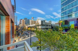 Welcome to Union Square, one of the Beltline’s most desirable addresses — perfectly positioned on 13th Avenue SW, just steps from Calgary’s best dining, shopping, and entertainment. Whether you’re strolling down 17th Ave, heading to a Flames game at the Saddledome, or meeting friends at a nearby café, this location puts you right in the heart of it all. Inside, this corner two-bedroom, two-bath condo offers nearly 900 sq. ft. of thoughtfully designed living space, combining comfort, functionality, and urban style. The open-concept layout makes the most of the natural light from floor-to-ceiling windows, with laminate and tile flooring throughout for a clean, modern look. The kitchen is the hub of the home — complete with stainless steel appliances, granite countertops with a breakfast bar, and warm maple cabinetry that provides plenty of storage. It opens seamlessly into the spacious living and dining area, perfect for hosting friends or relaxing with city views. The primary suite is privately tucked away on one side of the unit, featuring a walk-in closet and a 4-piece ensuite with modern finishes. On the opposite side, the second bedroom enjoys direct access to a 3-piece bath, which also connects to the main living area — a smart layout ideal for guests or a roommate. Additional highlights include central A/C, in-suite laundry, titled underground parking, and an assigned storage locker for convenience. Union Square is a concrete high-rise with a sleek, contemporary design, surrounded by urban parks, fitness studios, and restaurants — everything you need within a few blocks. It’s an ideal fit for downtown professionals, downsizers, or anyone looking for a low-maintenance, walkable lifestyle in Calgary’s vibrant core. Experience Beltline living at its best — stylish, convenient, and right where you want to be.