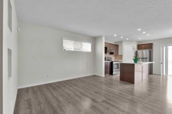 Welcome to this beautifully updated 3-bedroom, 2.5-bathroom half duplex located in a quiet cul-de-sac in the sought-after community of Cranston. Directly across from a school and playground, this home offers a family-friendly location with plenty of additional street parking and convenient access to both Stoney Trail and Deerfoot Trail. The main floor boasts an open-concept layout with a bright living room, spacious dining area, and a functional kitchen complete with a central island—perfect for both everyday living and entertaining. Recent renovations include new quartz countertops, brand new stainless steel stove and hoodfan, modern lighting upgrades including pot lights, fresh paint throughout, and new carpet. Upstairs, you’ll find three well-sized bedrooms, including a primary suite with a walk-in closet and private 4-piece ensuite. Additional features include a single attached garage, a fully fenced backyard with a deck, and an unfinished basement ready for your personal touch. With no condo fees and a location close to schools, parks, shopping, Seton amenities, and the South Health Campus, this is a fantastic opportunity to own a move-in ready home in one of Calgary’s most desirable communities.