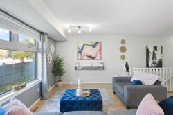 This well-kept bungalow-style corner townhouse offers a bright, comfortable layout in the heart of McKenzie Lake. Fresh paint throughout gives the home a clean, updated feel, while the double attached garage and private driveway add everyday convenience. The main level features a spacious living and dining area that connects easily to the kitchen, which offers plenty of cabinet and counter space. Step outside to your own private deck, a great spot to enjoy a quiet morning or wind down in the evening. The upper level includes generously sized bedrooms filled with natural light, designed to feel private and inviting. Downstairs, the finished basement expands the living space with a second family area and a large bedroom with a walk-in closet, making it ideal for guests or extended family. Recent improvements in 2025 include a new hot water tank, furnace gas valve, and shower faucet. Triple-pane windows improve energy efficiency, and condo fees take care of exterior maintenance for easy living. Located close to Deerfoot Trail, 130th Avenue, shopping, restaurants, gyms, and Fish Creek Park, this corner unit delivers a practical layout, low-maintenance lifestyle, and an excellent location.