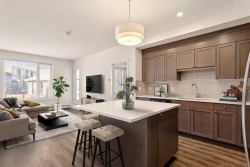 Welcome to this beautifully maintained 2-bedroom, 2-bathroom condo in the sought-after Fish Creek Exchange, ideally located in the heart of Shawnee Slopes. With nearly 800 sq. ft. of thoughtfully designed living space, this move-in-ready home blends modern comfort with one of Calgary’s most desirable natural settings.Step outside and you’re just moments from Fish Creek Park, offering endless trails, green space, and year-round recreation. Commuting is equally effortless with the Fish Creek–Lacombe LRT Station within walking distance, providing quick access downtown and beyond.Inside, the open-concept layout creates a warm and welcoming flow between the kitchen, dining, and living areas—perfect for everyday living or entertaining. The modern kitchen is fully upgraded with stainless steel appliances, quartz countertops, soft-close cabinetry, an undermount sink, and a generous island that anchors the space. The primary bedroom offers a walk-through closet and a private 3-piece ensuite, while the second bedroom and full bathroom provide flexibility for guests, a home office, or roommates.This well-managed, pet-friendly complex (cats and dogs welcome) also features titled underground parking, titled storage, in-suite full size laundry, and two indoor bike storage lockers, ideal for an active lifestyle. Unit #208 is conveniently located on the same level as the entrance and elevator, with easy access via ramp or stairs.Surrounded by the amenities of Shawnee Slopes, close to schools, shopping, transit, and nature, this home is perfectly suited for first-time buyers, downsizers, or investors seeking a low-maintenance property in a high-demand location.An exceptional opportunity to live where city convenience meets natural beauty - don’t miss it.