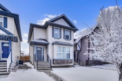 Welcome to 210 Cranberry Place SE, a charming and updated home in the heart of Cranston — just steps from parks, schools, shopping, public transit, and the community center. This well-maintained property offers great curb appeal and a sunny, south-facing backyard complete with a large L-shaped deck, a spacious shed, and a insulated double detached garage for added convenience. Inside, you'll find a bright, open-concept main floor with a front flex room that’s perfect for a home office or quiet reading space. The kitchen is well laid out with a center island and eat-up bar, a pantry, and all appliances have been replaced within the past year. The living and dining areas flow nicely together, and a 2-piece bathroom completes the main level. Upstairs offers a generous primary suite with a walk-in closet and full 4-piece ensuite, plus two additional bedrooms connected by a Jack & Jill bathroom. The laundry is conveniently located on this level as well. The developed basement includes two additional rooms that could function as bedrooms (note: no closets), a rec space, and a dedicated dog grooming room equipped with two grooming stations and a washing machine — all of which can be included in the sale or removed at the buyer’s request. This is an excellent opportunity to own a move-in ready home in one of Calgary’s most family-friendly communities. Book your showing today!