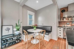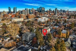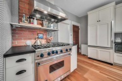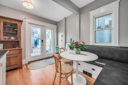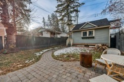 Timeless character and modern comfort come together beautifully in this exceptional two-storey home, perfectly nestled in the heart of Bankview. Built in 1911, this residence tells a story one of craftsmanship, charm, and thoughtful updates that allow you to enjoy the soul of a historic home without sacrificing today’s conveniences. From the moment you arrive, the inviting east-facing front porch sets the tone, offering the perfect spot to enjoy a quiet morning coffee as the neighborhood comes to life. Step through the front door and into a warm, welcoming main floor where original character details shine. The generous living and dining spaces are ideal for hosting friends or cozy family gatherings, highlighted by a decorative fireplace mantle with tiled surround, Schoolhouse Electric lighting, and Hunter Douglas cordless blinds. Upgraded Pella windows fill each room with natural light. The heart of the home is the kitchen—rich in texture and design—with exposed brick, custom cabinetry, a penny tile backsplash, and a Viking 6-burner gas range paired with a premium Vent-A-Hood. Custom banquette seating with hidden storage creates a welcoming space for everyday meals and lingering conversations. From here, step into the west-facing backyard featuring new sod, low-maintenance landscaping, and the convenience of a double detached garage. A charming 2-piece guest bathroom with exposed brick completes the main level. Upstairs, three thoughtfully laid-out bedrooms offer peaceful retreats. The primary bedroom feels like a true escape with its dressing/sitting area and dual walk-in closets. One of the secondary bedrooms opens onto a private patio overlooking the backyard—an unexpected and delightful place to unwind. The third bedroom is great size with a walk in closet. The fully renovated bathroom is spa-inspired, featuring in-floor heat, a tiled walk-in shower with built-in bench, rain and wall-mounted shower heads. Beyond its beauty, this home offers exceptional comfort and efficiency with brand new central air conditioning and a $20,000 insulation upgrade, including fully removing all old insulation and appling two pound spray-foam to the attic with blown-in insulation on top and a fully spray-foamed basement. The balcony was also fully redone with new dura deck, glass railings and new exterior door. Roof shingles, eavestroughs, and downspouts were replaced in 2019. The furnace and hot water tank have also been replaced. The home is truly modernized with all the appropriate and costly repairs done, providing peace of mind for years to come. The basement is undeveloped with a 3-piece bathroom rough-in, offering endless potential to make the space your own. Located just steps from vibrant 17th Avenue SW, you’ll enjoy easy access to all the amenities. The revitalized park at the end of the street invites everything from playground adventures to quiet afternoons with a book. This is more than a home—it’s a lifestyle, and a rare opportunity to own a piece of Calgary’s history
