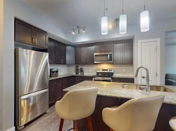 OPEN HOUSE JANUARY 3 from 1-3 PM.Welcome to smart, low-maintenance living in this bright, east-facing one bedroom plus den condo in Sage Hill NW Calgary. Designed for functionality and comfort, the open-concept layout features a modern kitchen with stone countertops and a large central island, ideal for everyday living and entertaining. Vinyl plank flooring and expansive windows create a light-filled, contemporary feel throughout.A spacious private balcony with a gas BBQ hookup extends your living space outdoors, perfect for morning coffee or summer evenings. The versatile den works beautifully as a home office, study, or guest space, adding flexibility rarely found in one-bedroom condos.Additional features include in-suite laundry, pet-friendly living, and an outdoor parking stall. This elevator-equipped, professionally managed building is surrounded by shopping, restaurants, parks, and everyday amenities, with easy access to transit, including direct bus routes to the University of Calgary and Brentwood CTrain Station.Condo fees include heat, water, sewer, insurance, professional management, common area and grounds maintenance, parking, and reserve fund contributions, offering predictable ownership costs and peace of mind.No age restrictions. Pets permitted (up to two cats or one dog under 15 kg, subject to board approval).Move-in ready and ideally suited for first-time buyers, downsizers, or investors seeking a NW Calgary condo with strong rental appeal and excellent transit connectivity.