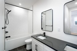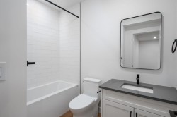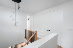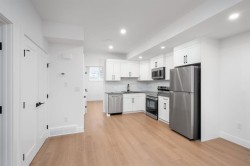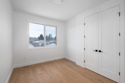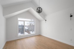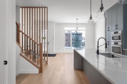 | Open House Sunday January 25th from 12-4pm | Welcome to The Killarney Collection in SW Calgary—thoughtfully crafted on a quiet street, this fully upgraded duplex infill offers a refined balance of scale, texture, and modern comfort. From the moment you arrive, the home makes a striking first impression with its sleek, contemporary exterior, pairing oversized triple-pane windows for abundant natural light with warm natural tones of metal cladding, stucco accents, and brick detailing.Inside, 10-foot main floor ceilings create a grand sense of arrival, setting the tone for the interior designer–curated colour palette carried throughout the home. Every detail has been intentionally explored, with the heart of the main floor anchored by a chef-inspired gourmet kitchen. Featuring a premium Bosch appliance package, fully custom-painted cabinetry, and an oversized waterfall granite island, the space effortlessly blends luxury with everyday functionality. A dedicated front dining room offers a warm setting for gatherings, while the rear living room provides a more intimate retreat, centered around a full feature-wall gas fireplace—perfect for evenings spent unwinding. Thoughtful storage solutions are seamlessly integrated, including built-ins at the entry and a fully custom mudroom at the rear, ensuring every inch of space is maximized. Ascending to the upper level, subtle design moments continue to impress, with a full wood feature wall, custom stair lighting, and luxury wide-plank hardwood flooring flowing continuously throughout both the main and upper levels for a seamless transition.The oversized primary bedroom is a true sanctuary, showcasing a vaulted and peaked ceiling design with expansive windows that welcome morning light. The spa-inspired ensuite features a dual vanity, an expansive full-tile shower, and a calming, private retreat. Two additional bedrooms offer generous proportions, each complete with custom closet built-ins. The upper-level laundry room maintains the home’s commitment to efficiency and design, offering full cabinetry, a folding counter, side-by-side washer and dryer, and a laundry sink. A versatile work-from-home alcove completes the upper floor, easily functioning as a den or secondary living space.The lower level further extends the home’s flexibility with an oversized 2-bedroom, 1-bath legal suite, centered around a spacious open kitchen—ideal for rental income, guests, or multi-generational living. A separate full laundry room, understair storage, and built-ins throughout each closet ensure the same level of thoughtful design continues below.Perfectly positioned close to inner-city Calgary, recreation centres, shopping, and public transit, this Killarney residence offers a timeless blend of form and function—designed to live beautifully today and adapt effortlessly for tomorrow.