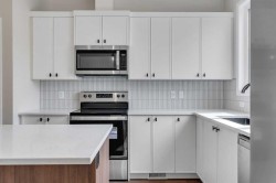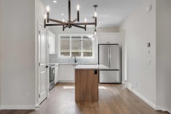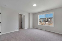 Welcome to 225 Heirloom Way SE, an exciting opportunity to purchase a brand new Heirloom Street townhome by Baywest Homes in the highly sought-after community of Rangeview. Presenting The Viola A model, this home offers a charming farmhouse-inspired exterior and an elegant interior featuring finishes handpicked by a professional interior designer. The layout is designed with the modern family in mind, offering an open concept on the main floor with 9-foot ceilings throughout. The main floor is highlighted by beautiful hardwood-inspired LVP floors, a gallery-style kitchen with quartz countertops, a sleek stainless steel appliance package, abundant cabinetry and counter space, and a spacious island with an eating bar. The living room, situated at the front of the home, is bright and airy with large, sunny windows. Just off the dining room, the mudroom and backdoor lead out to a private backyard and an oversized single detached garage. A half bath completes the main level. Upstairs, you’ll find 3 bedrooms, 2 bathrooms, and convenient laundry. The generously-sized primary bedroom includes its own 3-piece ensuite with a large shower. The remaining two bedrooms are located at the back of the home and share a full bathroom. The home also features an undeveloped basement, offering ample space for future development, including additional bedrooms, a bathroom, family room, or storage. This townhome is an end unit, offering the added benefit of a side door, and boasts a private South-facing backyard. It is ideally located across from the new community greenhouse and fronts onto the future community gardens. You won’t want to miss this one, as it’s one of the final opportunities to own a property directly across from the upcoming greenhouse. Additional inclusions are the front landscaping, designer-curated palette with upgraded finishes at no extra cost. The builder also includes one side of fencing for your private backyard. Rangeview is Calgary’s first Garden-to-Table Community, thoughtfully designed to inspire food-centered living. With walkable streets, open spaces, and vibrant gardens, it’s the perfect environment for neighbors to gather and connect. Residents can enjoy walking, jogging, or cycling through the community’s network of pathways and linear parks. Future plans include over 23 acres of reconstructed wetlands and ponds, creative playgrounds, outdoor classrooms, interpretive areas, and more. The food-producing gardens, orchards, and greenhouse will bring residents together to celebrate food and nature. The heart of Rangeview will be the Market Square, a lively space for community events, food markets, and celebrations, complete with open lawns and playgrounds. Plans for an Urban Village with restaurants, boutiques, and services will enhance the sense of community. **Photos are of the Showhome and may not exactly represent the finished product.