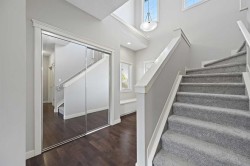 Welcome home to 229 Bridlerange Place in the sought after southwest community of Bridlewood. Walking distance to both public and private schools, shopping, restaurants, and other amenities. With quick access to 162 Ave and Stoney Trail, you can get around the city with ease. Located on quiet cul-de-sac with plenty of parking. Through the front door you will enter a welcoming foyer with a built-in bench with storage and large front closet. Beautiful hardwood flows throughout the foyer into the kitchen and dining room. The bright family room features a gas fireplace for cozy evenings. The storage and counter space in the kitchen is a chef's dream! Enjoy cooking for family or guests as they visit at the sit up bar. The kitchen includes a reverse osmosis water system to enjoy delicious drinking water directly from the sink. Off the dining room is access to the back deck and west facing backyard. The main floor is complete with a 2-piece bathroom, and laundry/mud room that leads to the attached double garage. Upstairs you'll find the primary bedroom with almost 10' ceilings, a 5-piece ensuite with a jetted bathtub, and walk-in closet. The large second and third bedrooms are perfect for kids bedrooms, guestroom, or an office. The upper level is complete with a unique 5-piece bathroom that features a bath/shower combo, toilet, and vanity that is separated by a door. The second part of the bathroom includes a large linen closet and additional vanity allowing multiple people to get ready at once. The unfinished basement is ready for your unique design. Already smartly laid out with a roughed-in bathroom and the furnace and hot water tank tucked in a corner, maximizing the space for a bedroom and recreation room. The sellers lovingly maintained and completed upgrades over the past 15 years including newer roof (2021), newer hot water tank (2022), new paint and carpet (2025). Don't miss out on this great opportunity! Contact your Realtor to book a showing today.
